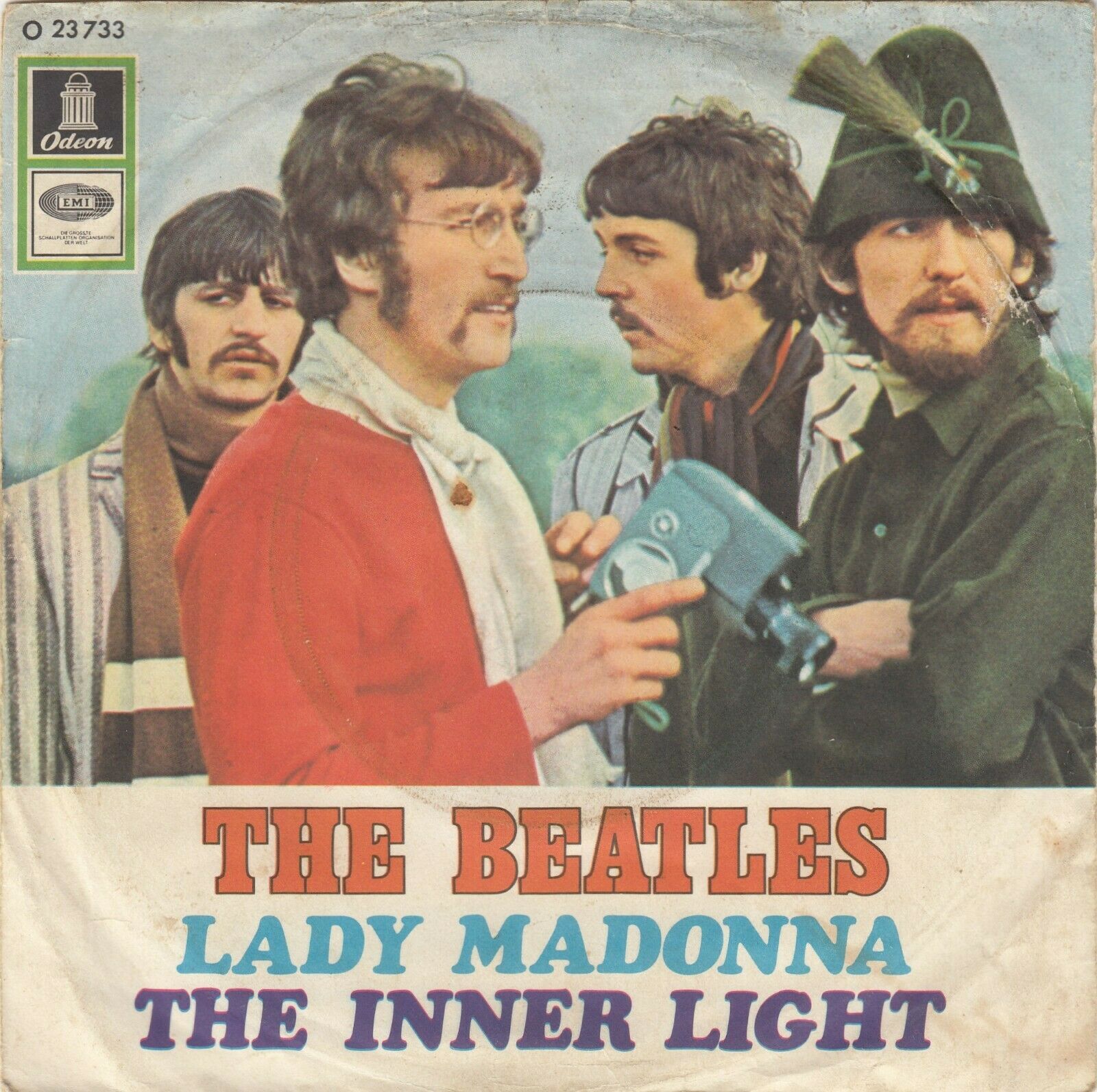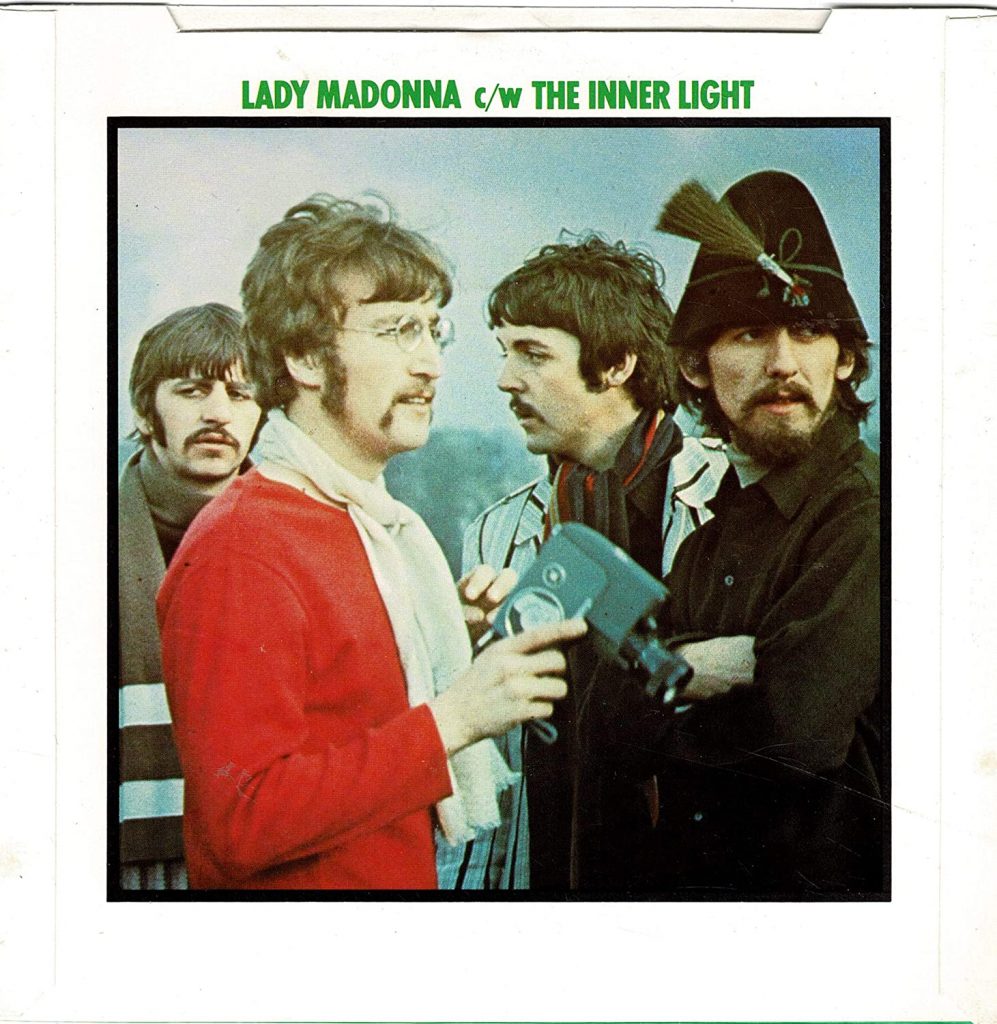 Appropriately, the “Strawberry Fields Forever”/”Penny Lane” single in the green series (1976) also used Bown’s photo. As is shown here, it was also used for “Lady Madonna”.
