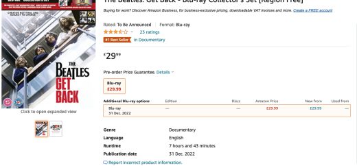 Some copies of the Beatles’ “Get Back” 3-disc Blu-ray and DVD sets made it out to the public in the USA before the product was recalled, due to the fact that the 2.0 stereo...